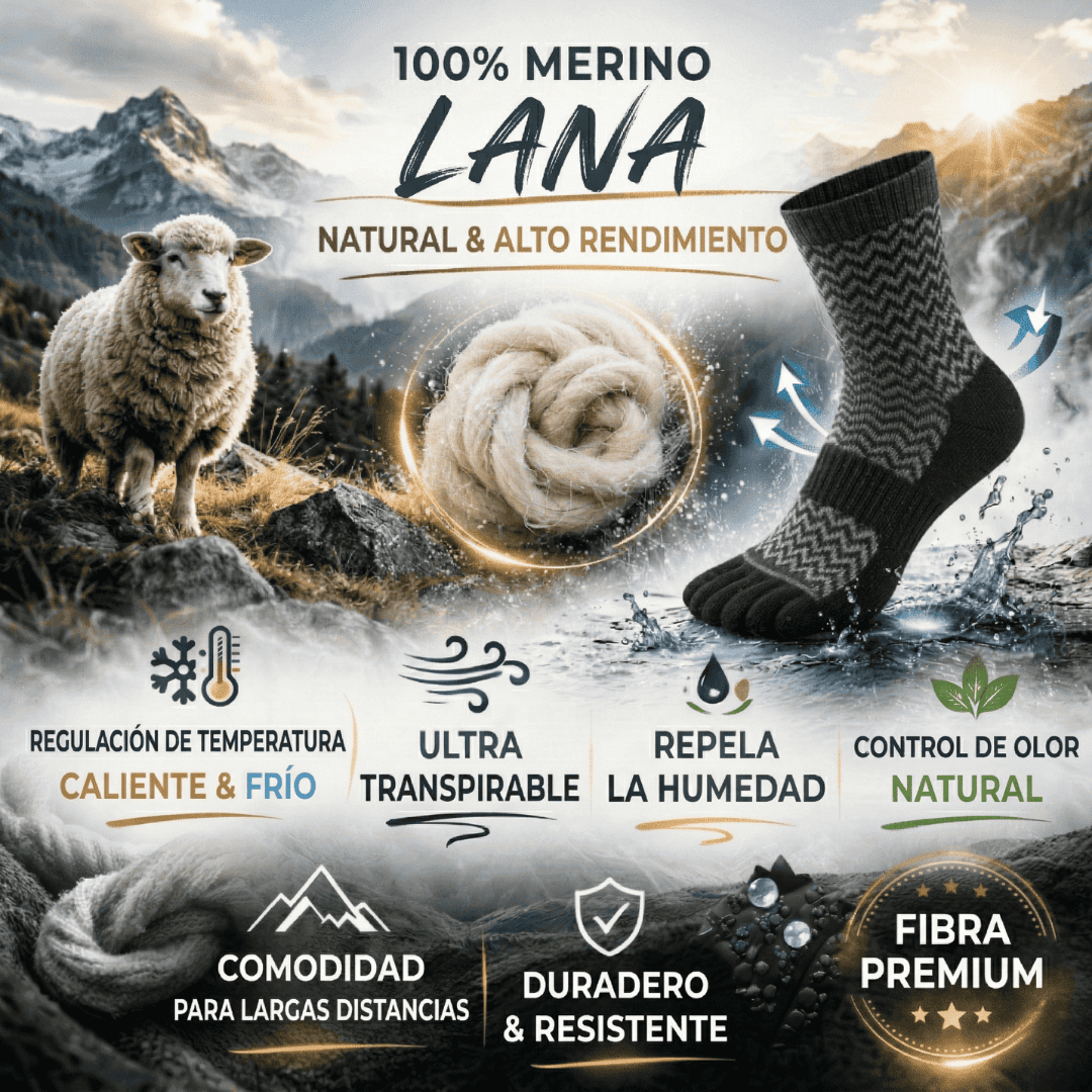 Nuestros calcetines con dedos de lana merino están diseñados para eliminar estas molestias y permitirte mantenerte concentrado en tu rendimiento.
