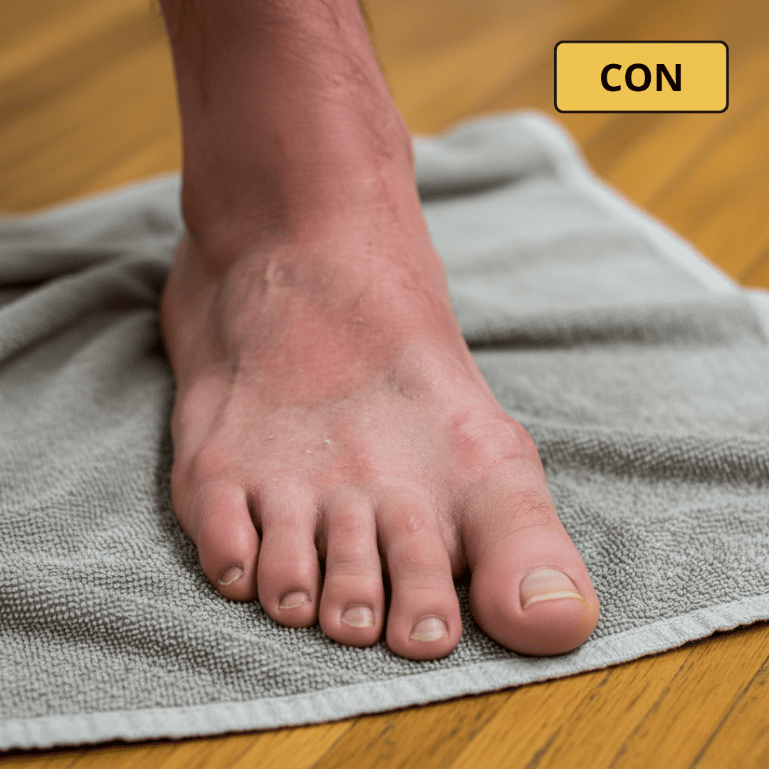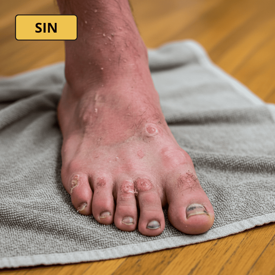 Dedos separados, pies secos y estables.